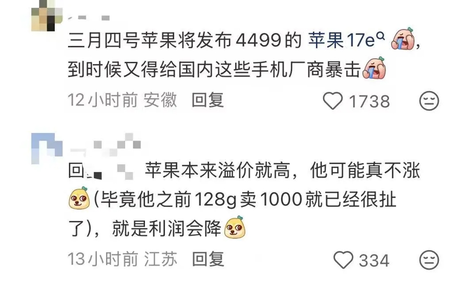 有网友评论道:“涨吧,涨了就去买苹果”,“要这么涨的话,只能转战苹果了”。